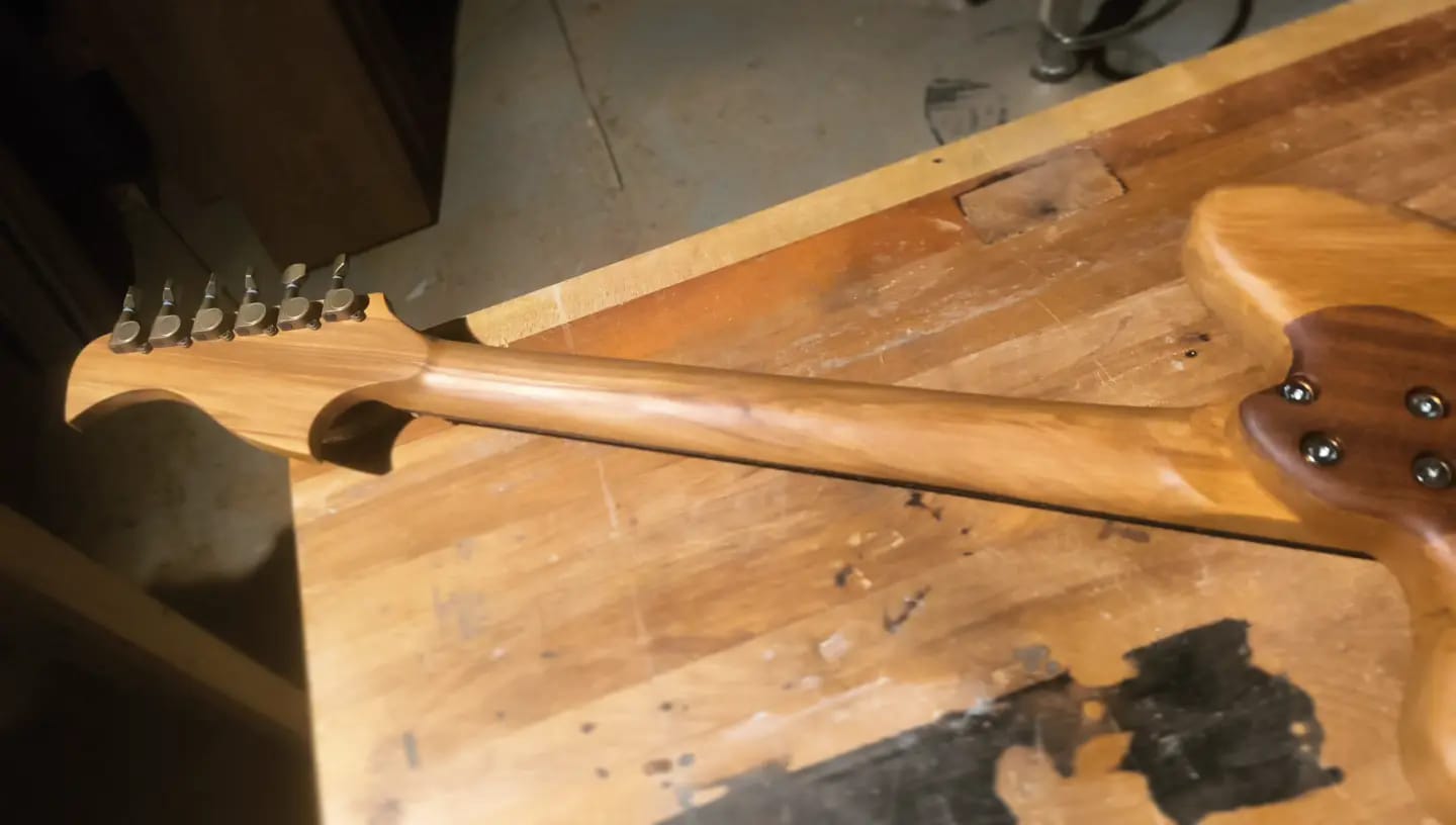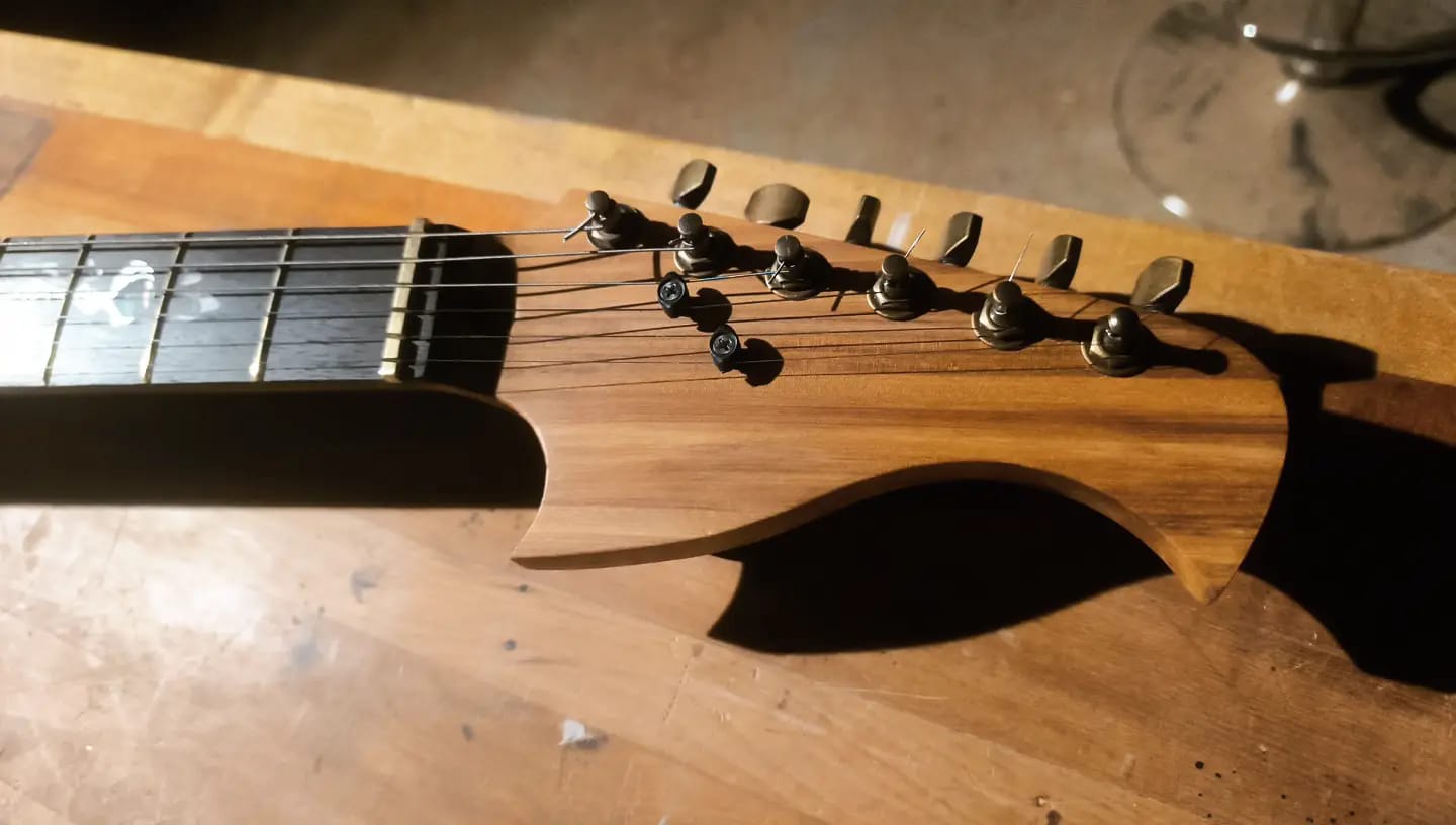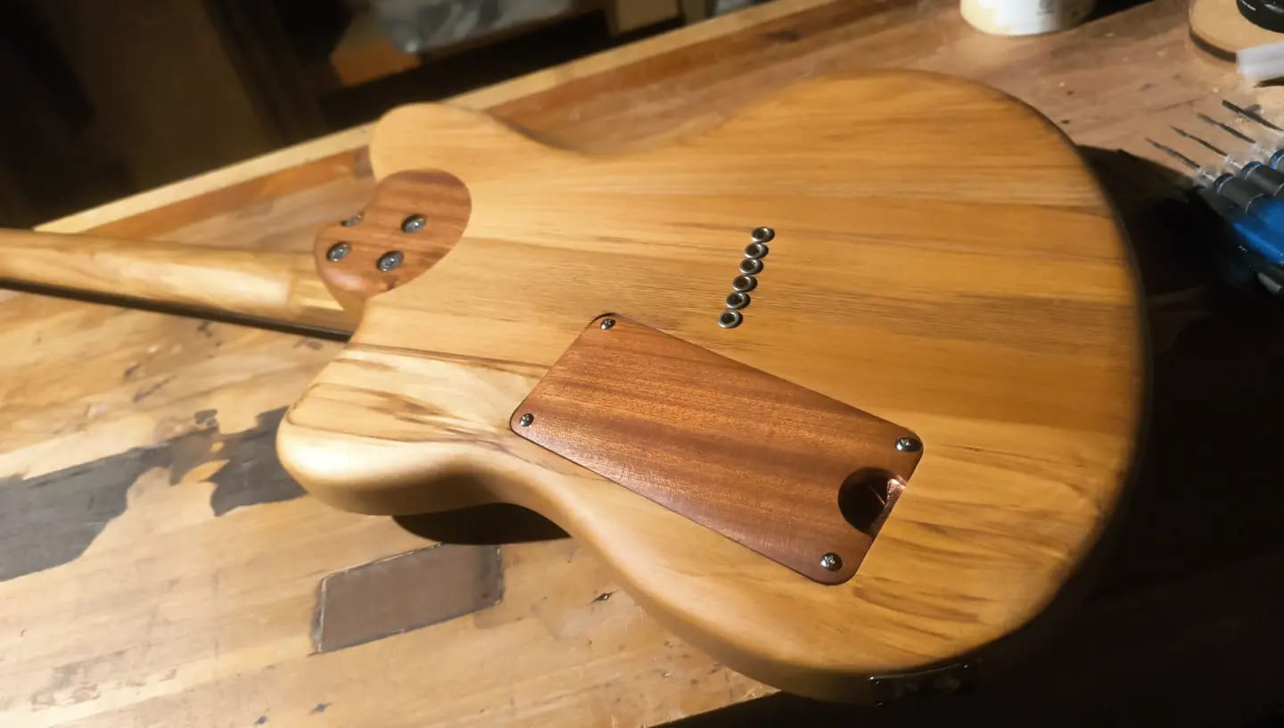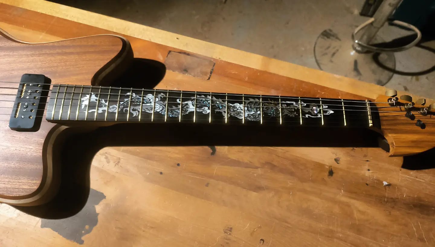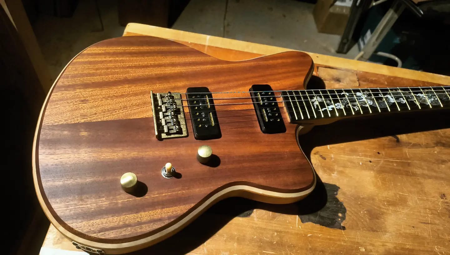 Old Brass is currently for sale in New Zealand. Get in touch if you’re interested! You can watch a video of the completion of this guitar, along with a demo of the sound, here.